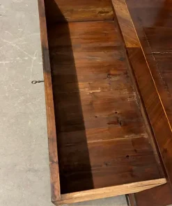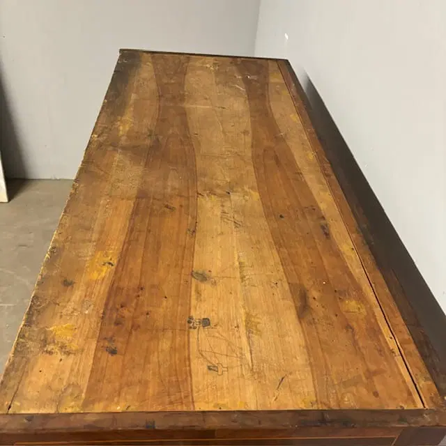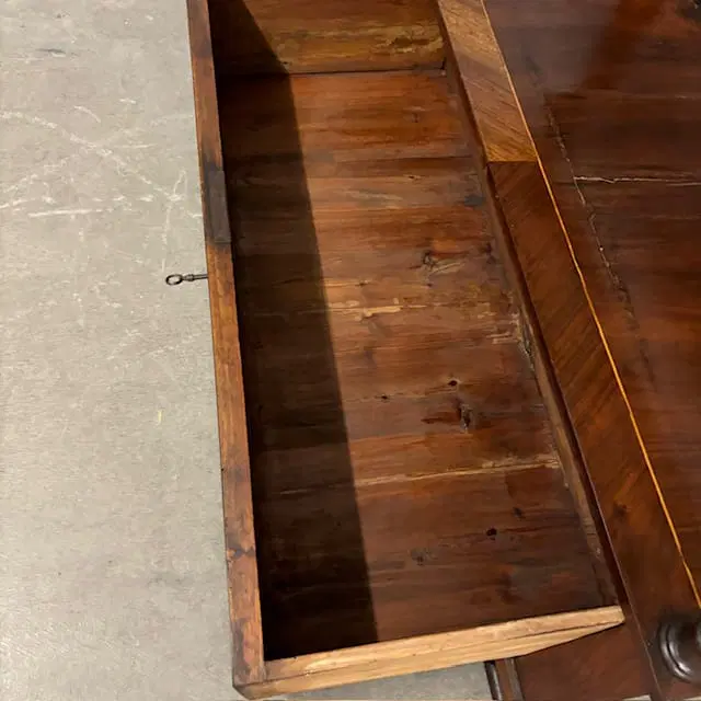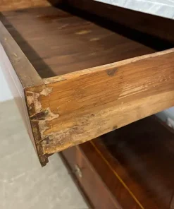 Antica ed elegante credenza a giorno CARLO X epoca 1840, con doppio cassetto , in noce lastronata e filettata con bordino in acero su tutta la superficie . Marmo bardiglio . restaurata . mis 119 x 52 . H 110
