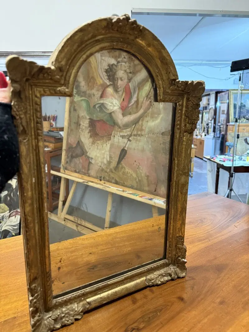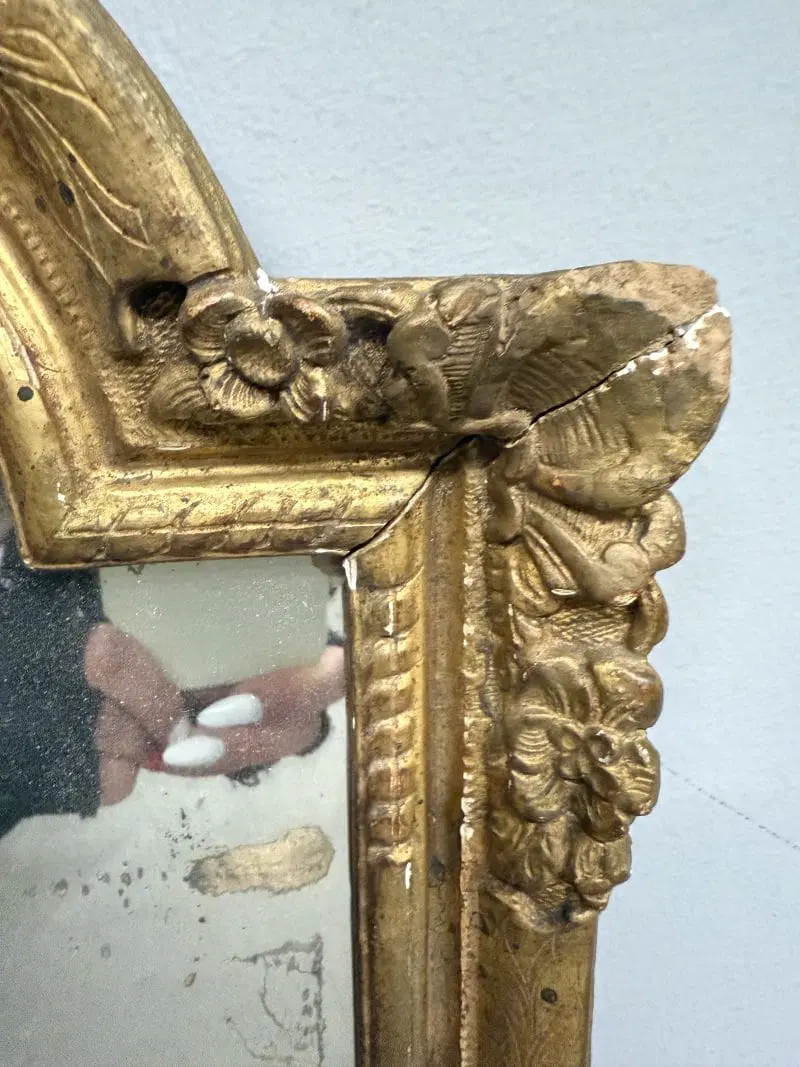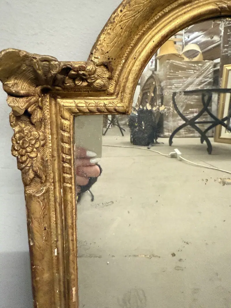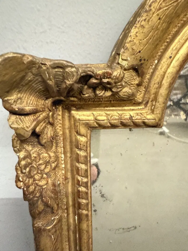 Antica piccola specchiera L. Filippo XIX sec., dorata foglia oro. mis 52x 34 cm. Piccoli difetti o mancanze, buono lo stato generale. Specchio coevo