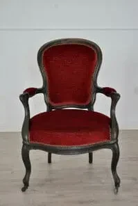 Poltrone in noce e velluto con rotelle gambe frontali.