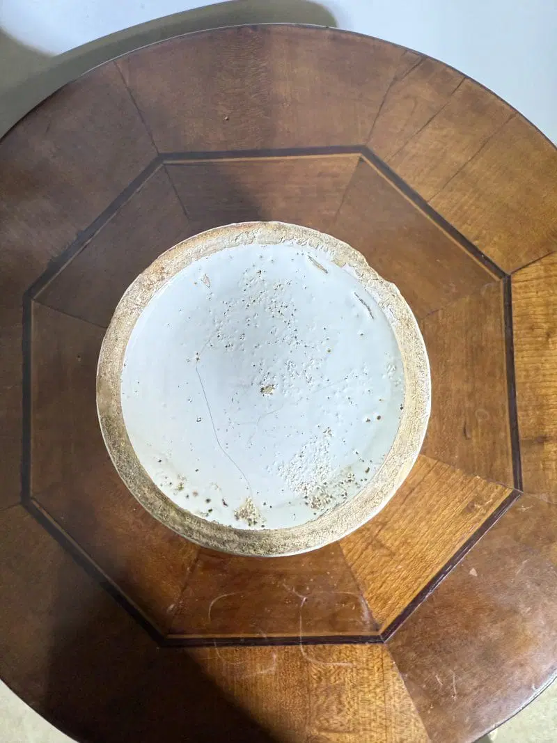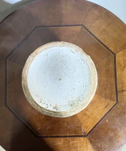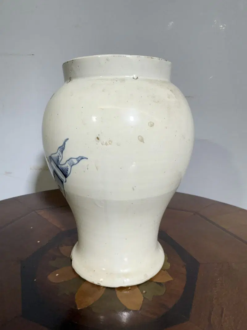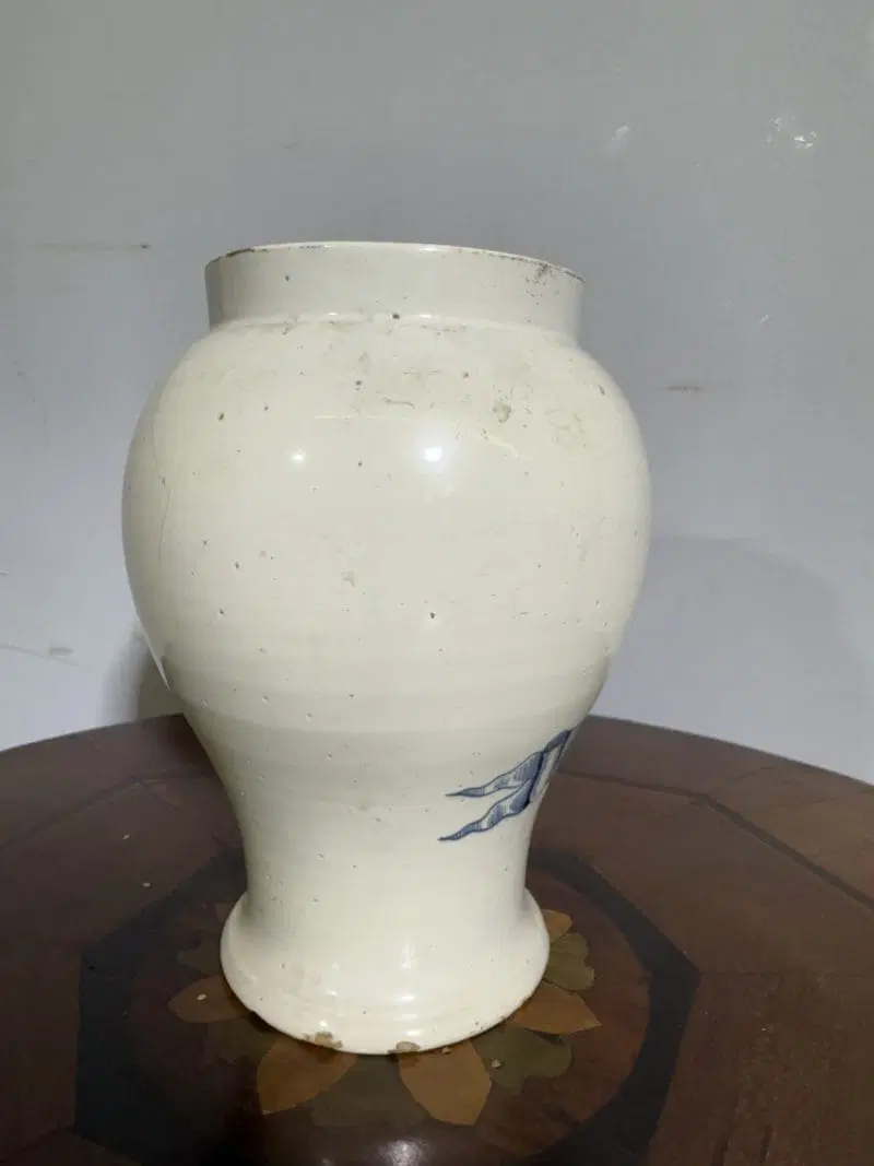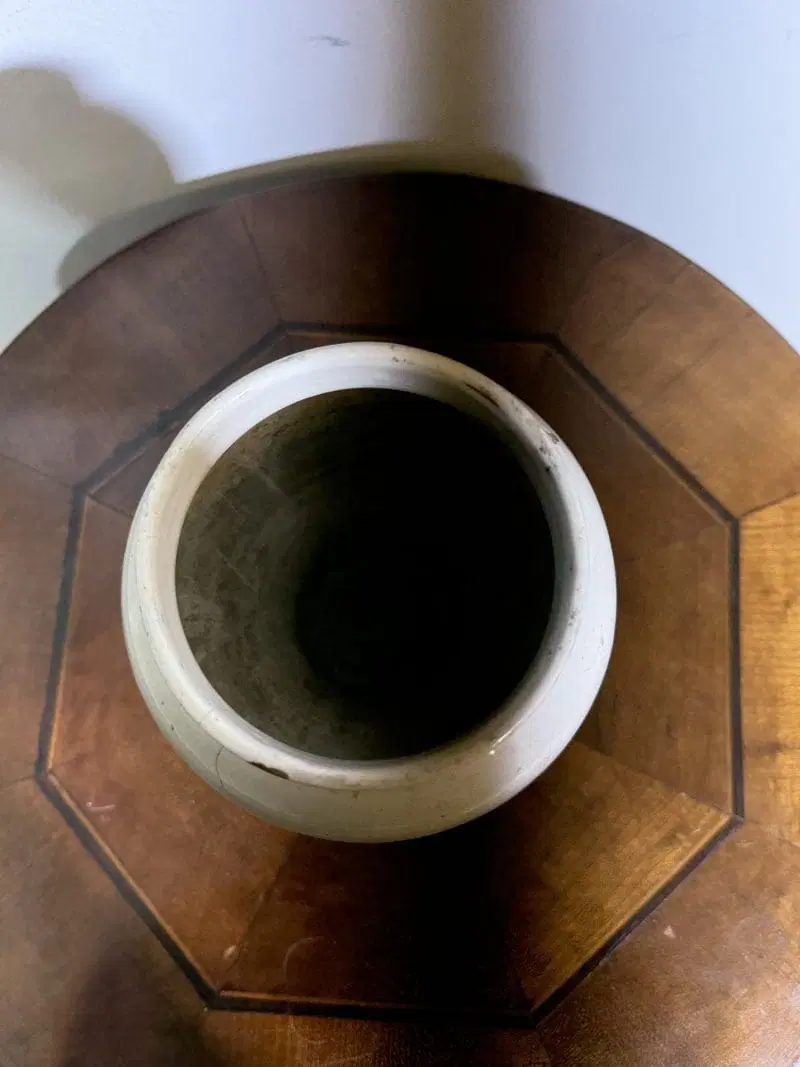 Antico vaso chiamato Albarello, vaso da farmacia, epoca metà XIX. In maiolica con scritta dipinta: Unguento Populeo, h 20, lp 15 cm. Utilizzato anticamente per conservare erbe e medicinali in farmacia.