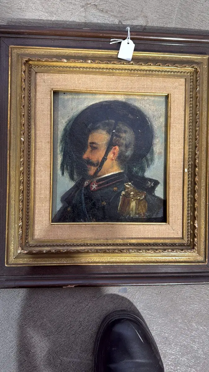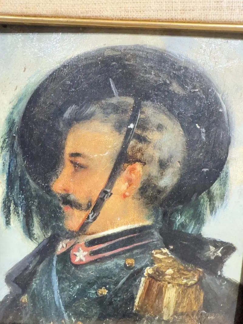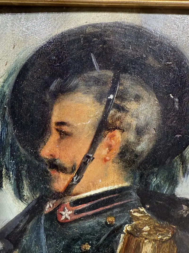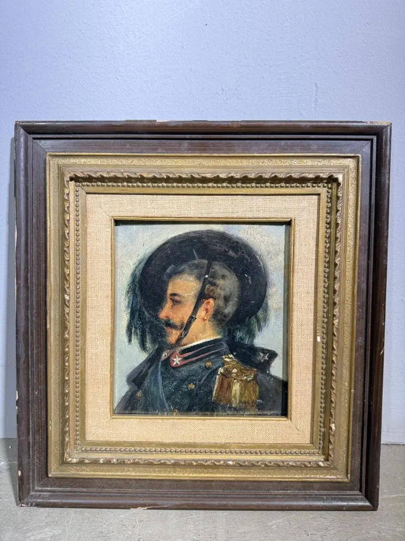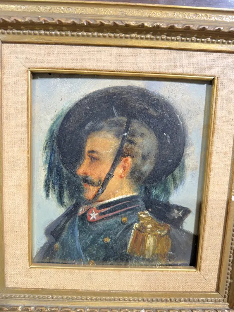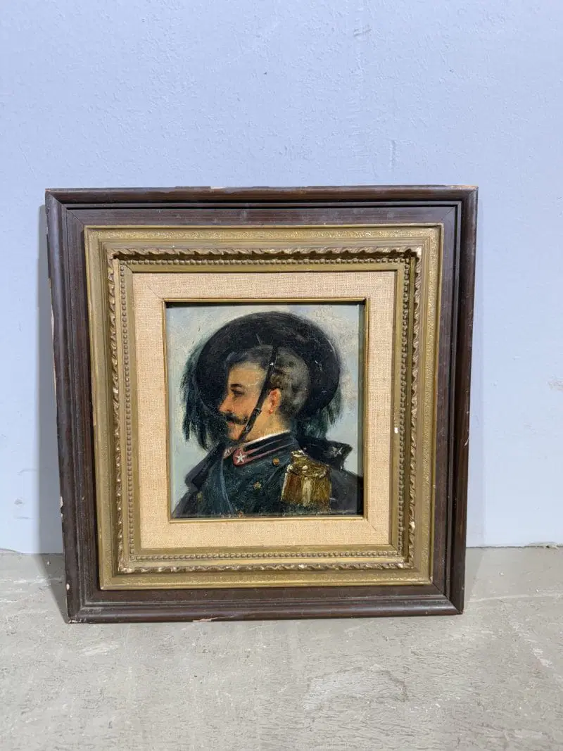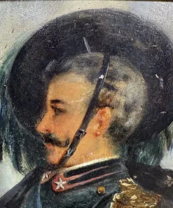 Antico dipinto raffigurante Bersagliere, olio su tavola, primi ‘900, ottimo stato, mis 34×32 cm, solo tela 20×17