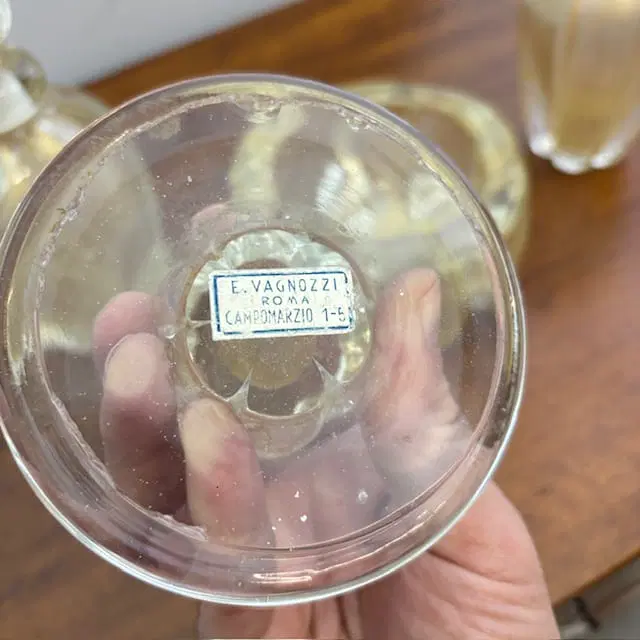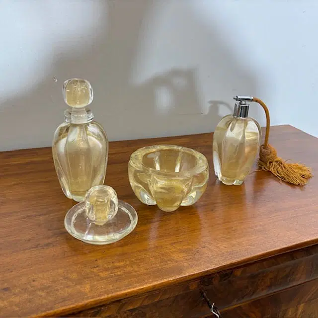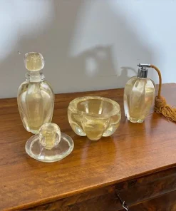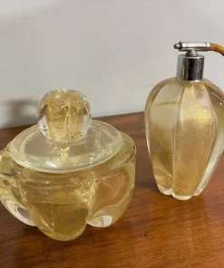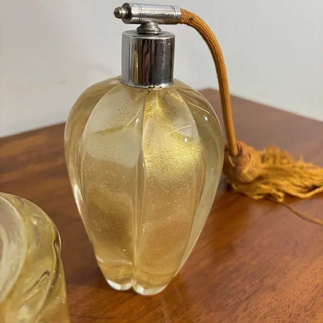 Antico Set Profumo vetro Murano anni 40 art decò .Con polvere oro.