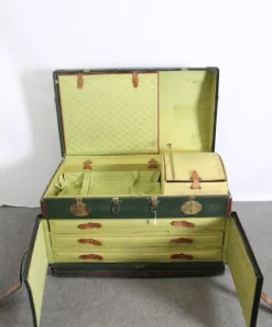 Antico splendido Baule da viaggio con armadio interno , uno dei primi esempi di valigie moderne. Utilizzato per grandi viaggi nei primi del 900, intatto realizzato con fermi in cuoio e interni in stoffa . Cassettiera in basso. Ottimo lo stato di conservazione. Oggetto raro di design!! Perfetto stato di conservazione . Ideale come arredo appartamenti o negozi !!