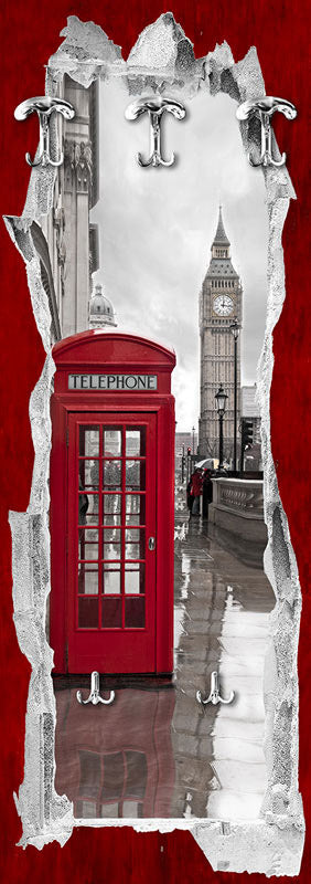 Appendiabiti da muro moderno pannello decorativo tema Londra cm 46×125