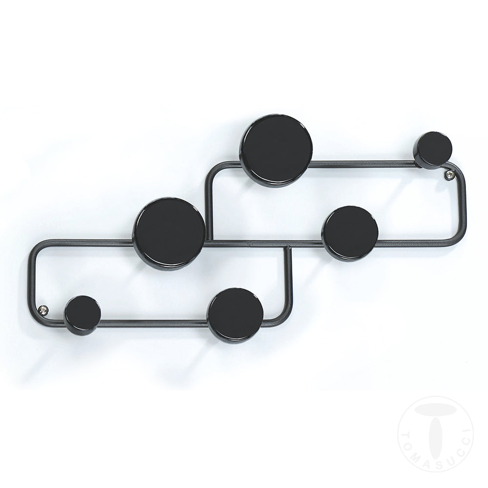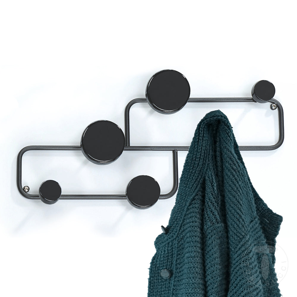 Appendiabiti da parete in metallo nero ganci in legno cm 50x7x20h