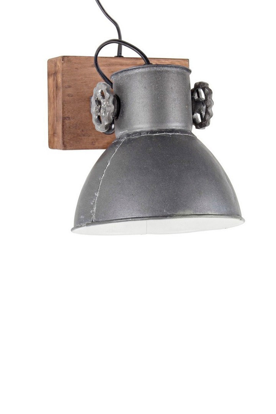 Applique con paralumi in acciaio e base in legno di mango. Il complemento è disponibile nella colorazione oro o argento, e con 2 luci o una. In stile industriale, per un tocco originale al vostro ambiente.