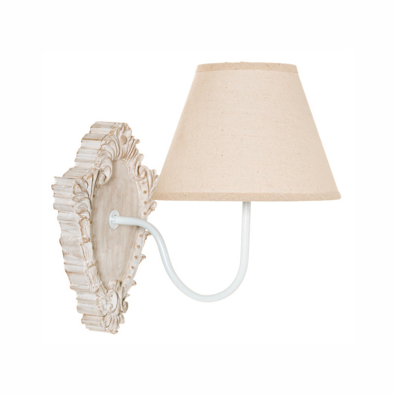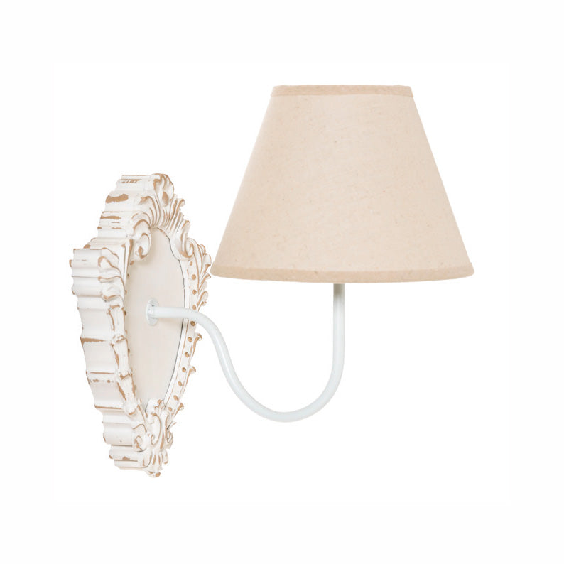 Applique una luce con placca in legno e classico paralume in tessuto, adorabile per chi possiede una casa in stile shabby. Infatti, ogni elemento di questa lampada da parete è progettato per trasmettere raffinatezza e una luce soft, distinta dalla placca con motivi classici ad intaglio e con leggero effetto decapato della superficie.