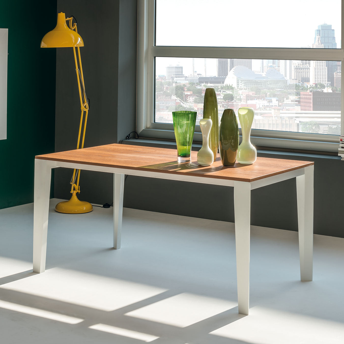 Tavolo allungabile moderno per soggiorno o sala pranzo realizzato interamente in legno con struttura robusta composta da gambe affusolate. Il tavolo moderno Aragon offre la possibilità di scegliere il colore del piano e delle gambe, optando per il monocolore o il bicolore.