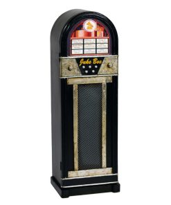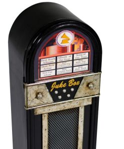 Straordinario armadietto con ripiani interni realizzato in legno colore nero, un pezzo da museo per gli amanti dell’arredamento vintage. Infatti, questo originale mobiletto riproduce un vecchio juke box, arricchito da tanti dettagli affinché sia il più verosimile possibile.