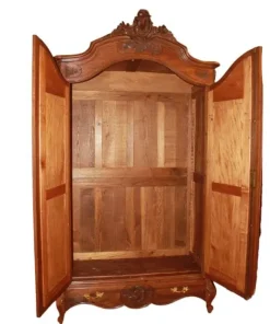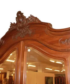 Armadio a 2 ante con specchi francese di fine 1800 stile Luigi Filippo in legno di noce. Presenta cappello con ricca cimasa intagliata, cassetto nel corpo inferiore 2 ante con specchi ed internamente ripiani.