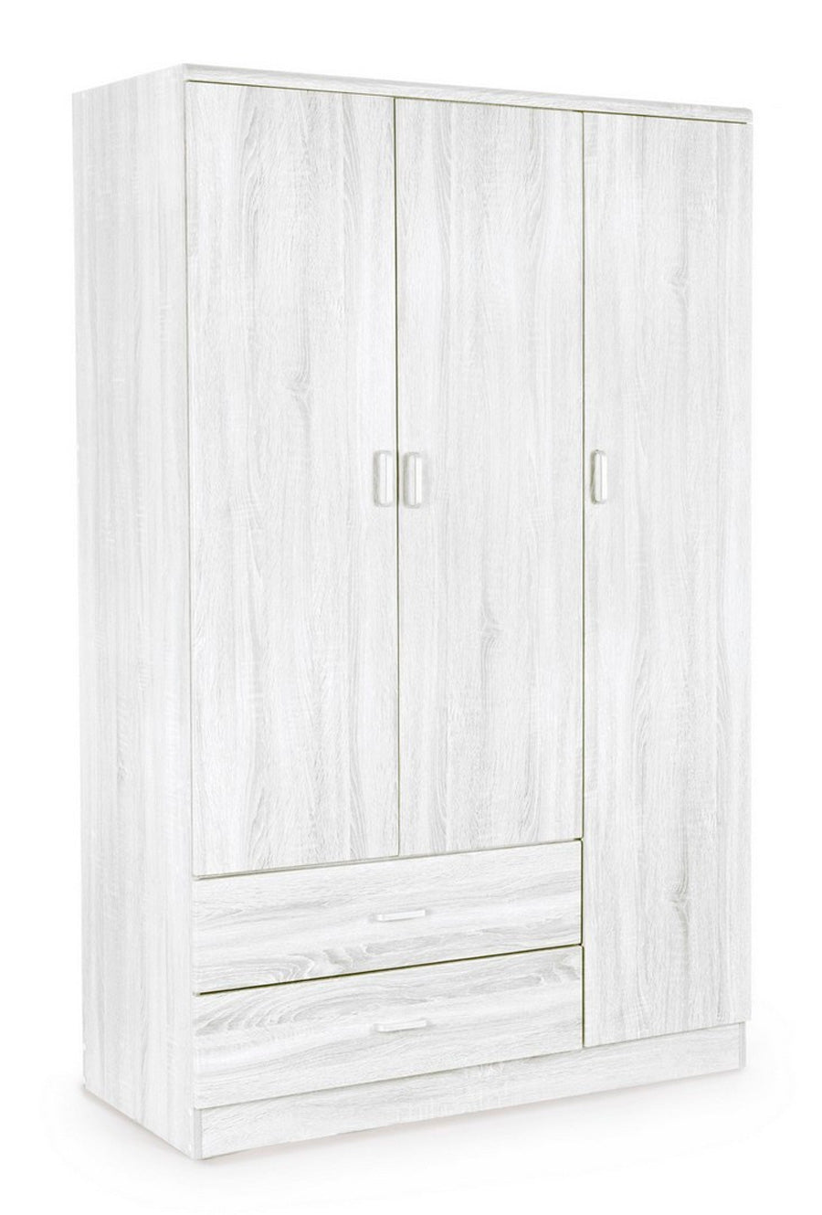 Armadio da camera in legno design moderno 3 ante 2 cassetti cm 120x52x190h – vari colori