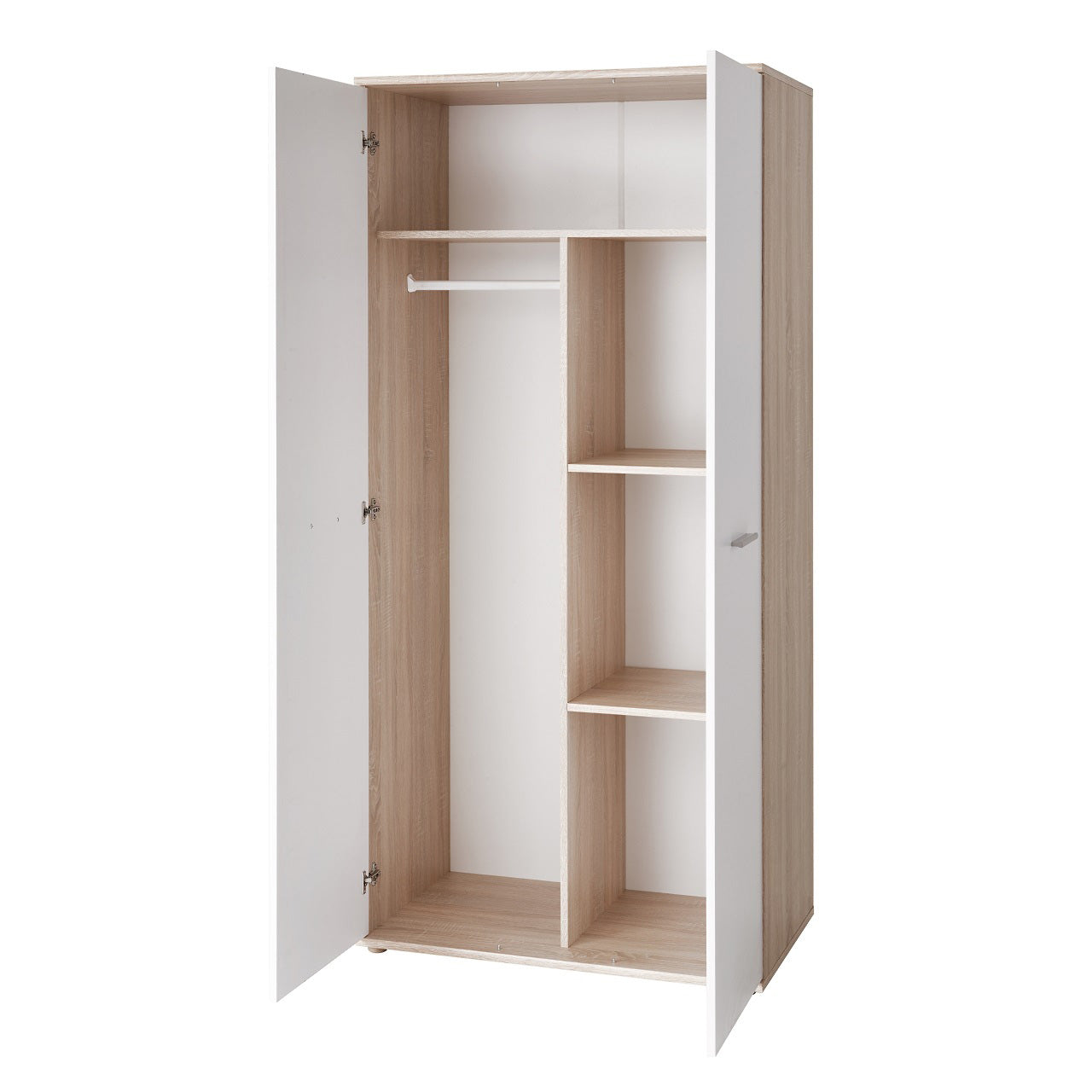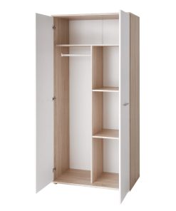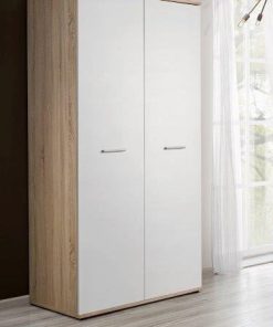 Armadio due ante design moderno in legno naturale e bianco cm 90x55x191h