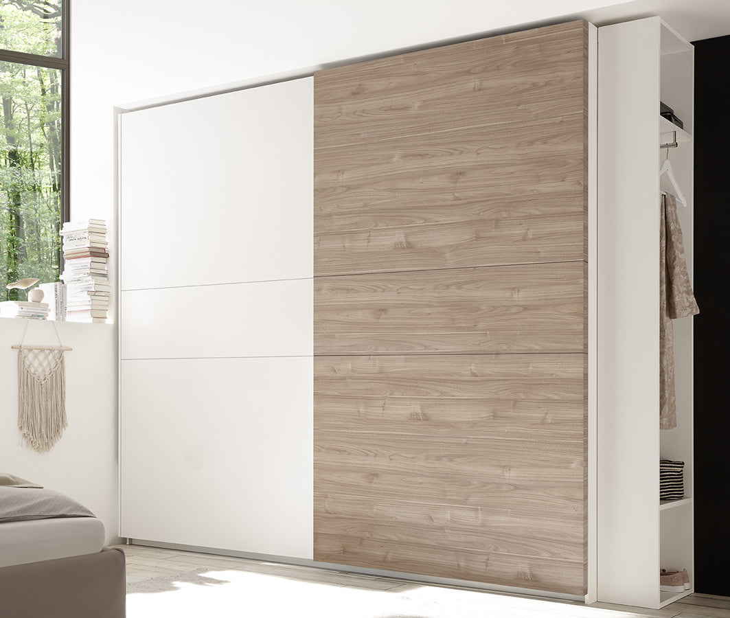 Armadio moderno con 2 ante scorrevoli Artelio una validissima soluzione per realizzare una stanza da letto pratica con uno stile che rispecchia semplicità e sobrietà tipici dell’arredamento contemporaneo. L’armadio da camera Artelio è proposto con struttura bianco opaco e una delle due ante disponibili in 3 finiture differenti come noce stelvio, noce dark oppure cemento, con diversi optional messi a disposizione, come cassettiera e ripiani aggiuntivi.