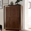La vetrina moderna sfoggia una bellissima finitura rovere cognac, che ricorda il legno tradizionale scuro e superbo. Non solo, le fasce in acciaio che circondano la parte frontale aggiungono ricercatezza al mobile.
