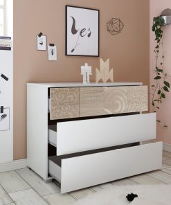 Astero – Cassettiera da camera 3 cassetti in rovere serigrafato e bianco cm 104x45x80h