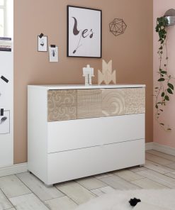 Astero – Cassettiera da camera 3 cassetti in rovere serigrafato e bianco cm 104x45x80h
