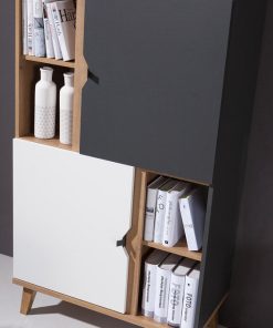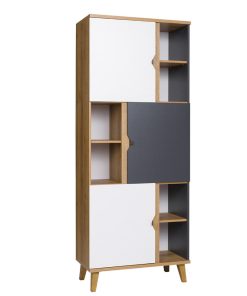 Mobile alto impiegabile come credenza per il soggiorno o come mobile porta oggetti multiuso. Atard si compone di 6 vani a giorno e di 3 ante con ripiani interni. Descritto da uno stile contemporaneo curato nei dettagli e fondato sull’alternanza di colori armonici che generano un aspetto diverso per accontentare gusti estetici differenti. Potrai optare per un aspetto più chiaro attraverso la scelta del binomio celeste e bianco a poro aperto, oppure più scuro scegliendo la versione con bianco opaco, grigio e finitura naturale oak.