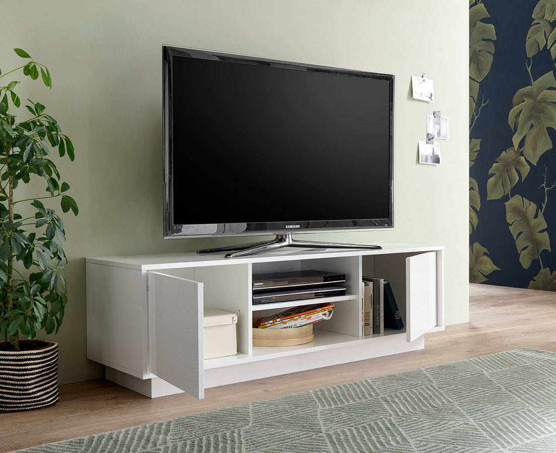 Mobile basso porta televisore Baik prodotto in legno colore bianco lucido. Baik è volutamente progettato come elemento versatile, grazie allo stile sobrio ed essenziale ma che rivela l’accuratezza dei dettagli che sottolineano la lavorazione Made in Italy.