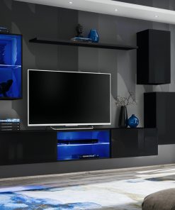 – mobile tv con ante a ribalta ripiano in vetro con luce a led blu