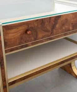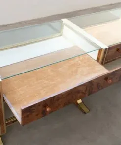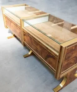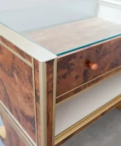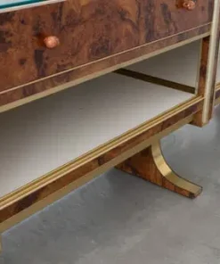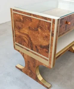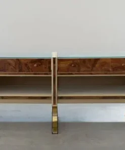 PEZZI 1 PERIODO DEL DESIGN 1970 ANNO DI PRODUZIONE 1970 PAESE DI PRODUZIONE Italia COLORE Oro, marrone, bianco, marrone chiaro MATERIALI radica, velluto, vetro, alluminio CONDIZIONI Buone. In alcuni punti sulle gambe si è gonfiato un po’ il truciolare a causa dell’età MISURE H90 x L208 x P67.5 PESO 100Kg LA CONSEGNA NON E’ GRATUITA, RICHIEDERE PRIMA UN PREVENTIVO. TI FORNIREMO IL PREZZO ESATTO IN BASE ALLA TUA POSIZIONE, PER FORNIRTI UN SERVIZIO ECCELLENTE