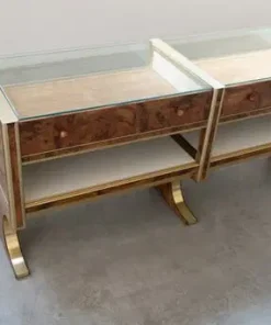 PEZZI 1 PERIODO DEL DESIGN 1970 ANNO DI PRODUZIONE 1970 PAESE DI PRODUZIONE Italia COLORE Oro, marrone, bianco, marrone chiaro MATERIALI radica, velluto, vetro, alluminio CONDIZIONI Buone. In alcuni punti sulle gambe si è gonfiato un po’ il truciolare a causa dell’età MISURE H90 x L208 x P67.5 PESO 100Kg LA CONSEGNA NON E’ GRATUITA, RICHIEDERE PRIMA UN PREVENTIVO. TI FORNIREMO IL PREZZO ESATTO IN BASE ALLA TUA POSIZIONE, PER FORNIRTI UN SERVIZIO ECCELLENTE