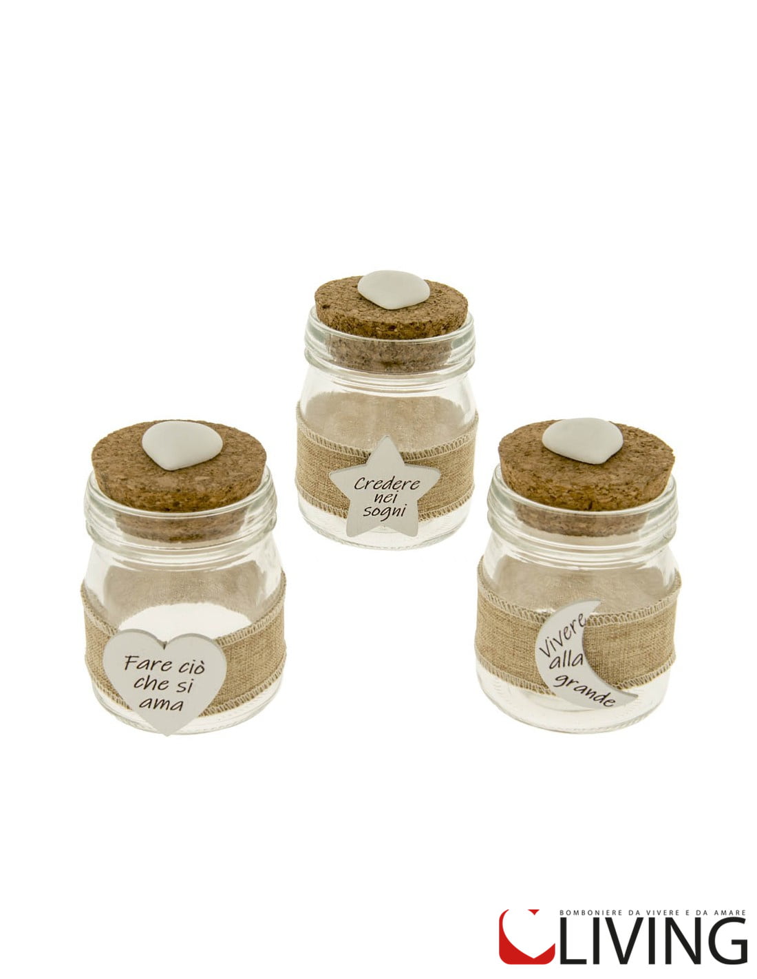 Il prezzo iniziale corrisponde al barattolino singolo vuoto per il fai da te, se si sceglie l’opzione bomboniera confezionata arriverà con 5 confetti a scelta, bigliettino personalizzabile con nome/tipo di evento/data e nastrino.