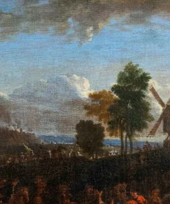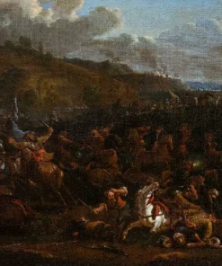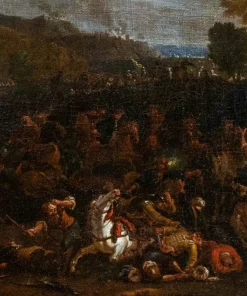 Le sue battaglie, usualmente in un metro espositivo ridotto, sono ricche di personaggi, con spaziose ambientazioni paesaggistiche, come nel caso del presente dipinto, in cui Breydel ha combinato uno dei suoi “classici” scorci di battaglia con un paesaggio del Reno, un genere che ha continuato a godere di grande popolarità per tutto il XVIII secolo.