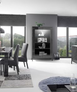 Belmont – Sala pranzo completa con tavolo vetrina e madia legno marmo nero lucido