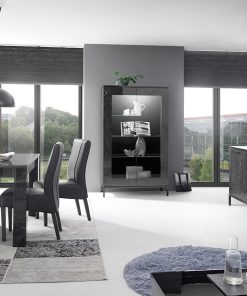 Belmont – Sala pranzo completa con tavolo vetrina e madia legno marmo nero lucido