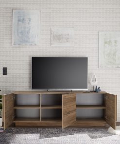 Mobile porta tv alto Beltram, dotato di 3 ante e vani interni. Realizzato in legno finitura Mercure, il nostro mobile tv conquista per il design minimale ma curato nei dettagli, esempio di design e produzione Made in Italy.