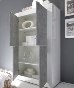 Credenza alta moderna, perfetta per una zona living contemporanea, pratica e che offre tanta spaziosità all’interno della sua struttura, divisa da 4 ripiani e 4 ante.