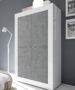 Credenza alta moderna, con 4 ripiani interni e 4 ante, realizzata in legno dal design essenziale e pulito. La madia Bennet è piena espressione di un mobile funzionale, capiente, per vivere il proprio living nel modo migliore possibile. Disponibile in diverse finiture, unendo colori diversi per regalare un risultato estetico accattivante e gradevole, come pero, cemento e bianco lucido.