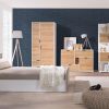 I mobili da camera sono realizzati tutti in legno con struttura bianco opaco e frontali finitura naturale, perfetti per chi apprezza tonalità sobrie e delicate.