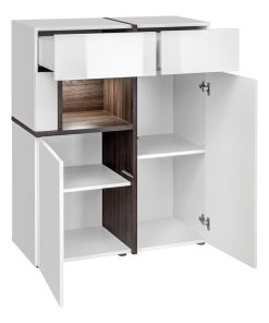 Bixia – Credenza moderna due cassetti due ante e vano con luce a led bianco e wengè cm 90x40x112h