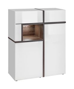 Bixia – Credenza moderna due cassetti due ante e vano con luce a led bianco e wengè cm 90x40x112h