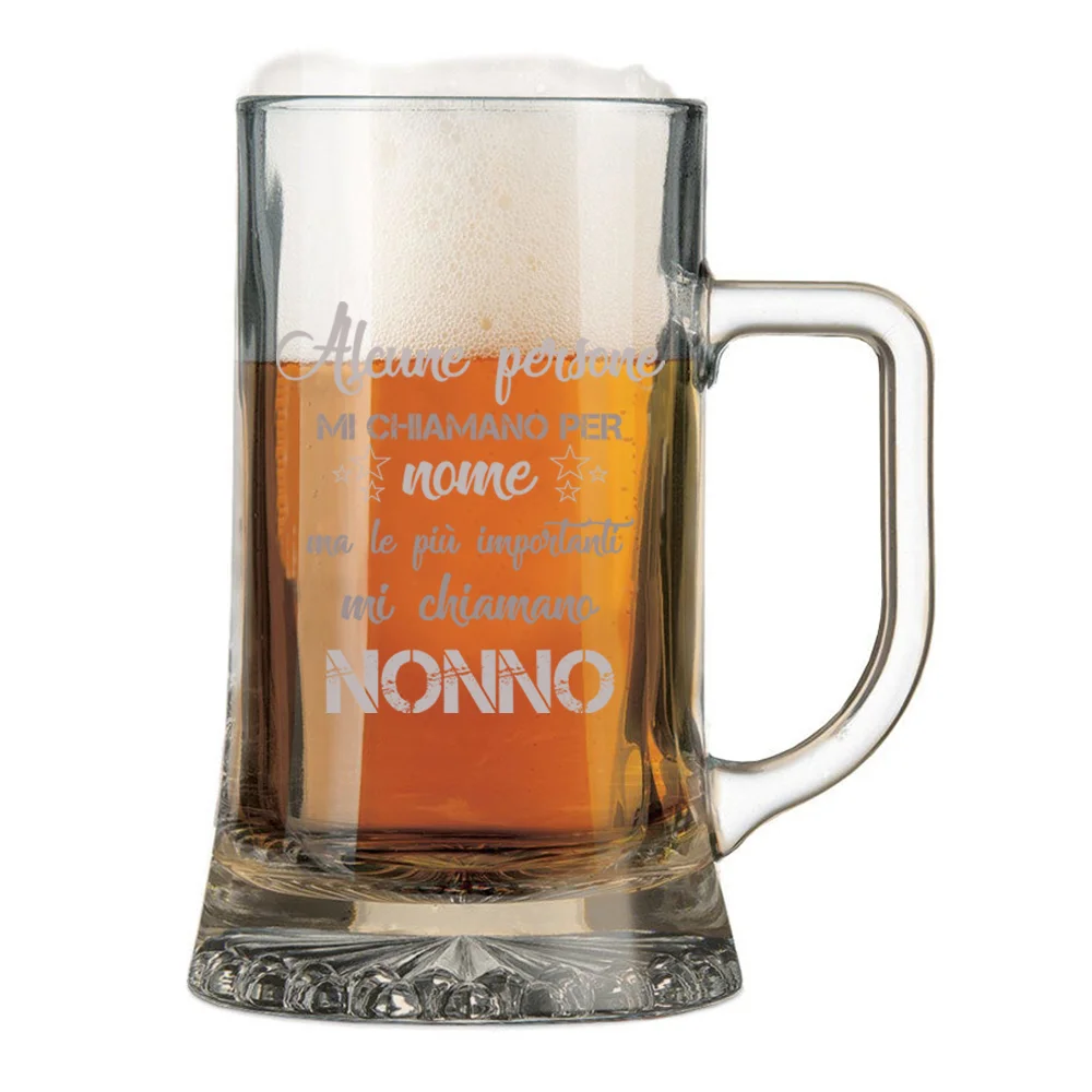 Regala questo boccale con incisione un pensiero simpatico ed originale per rendere speciale la festa dei nonni, il compleanno o un’altra ricorrenza a te cara. E’ realizzato in vetro di alta qualità con capienza 50 cl.