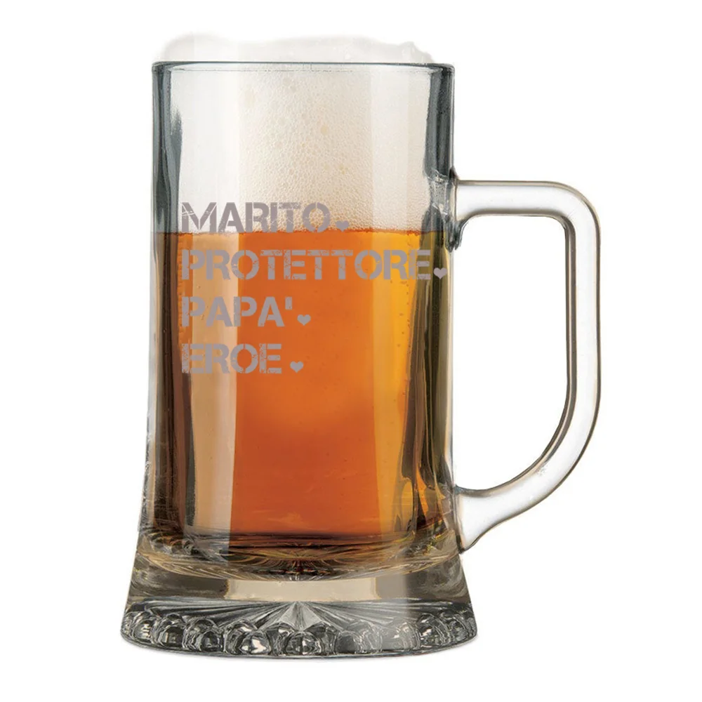 Regala questo boccale con incisione un pensiero simpatico ed originale per rendere speciale la festa del papà, il compleanno o un’altra ricorrenza a te cara. E’ realizzato in vetro di alta qualità con capienza 50 cl.