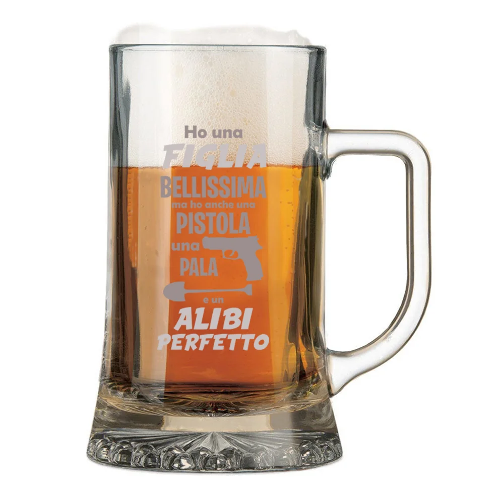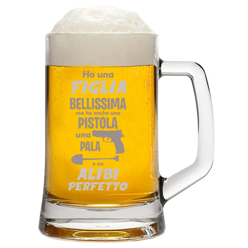 Boccale da Birra con incisione Papà – ho una figlia bellissima e un alibi perfetto – papà geloso – festa del papà – capienza 50 cl