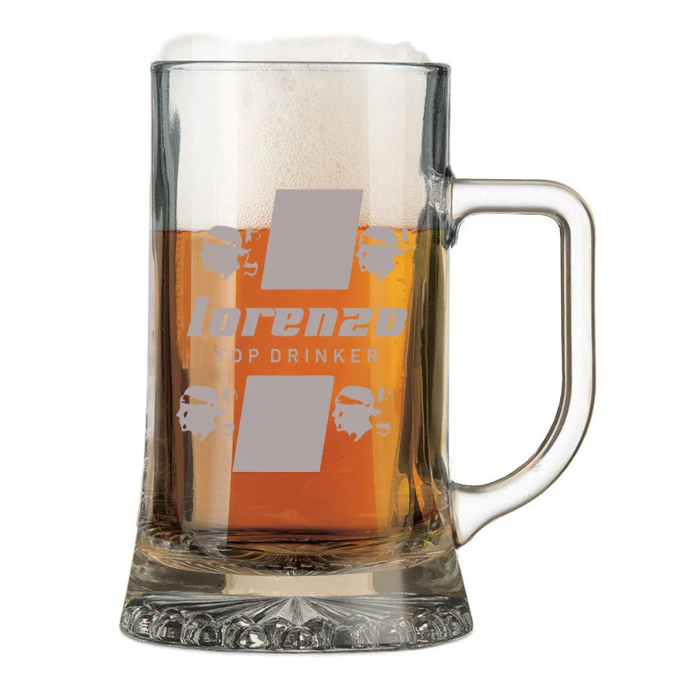 Boccale da birra con incisione personalizzabile con nome – top drinker – bicchiere in vetro 50 cl