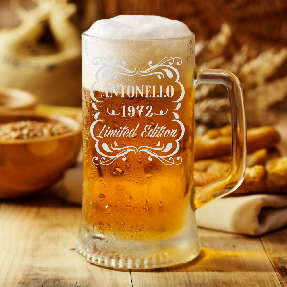 Boccale da Birra PERSONALIZZATO 50 cl inciso con Nome Frasi Anno Anni Compleanno Idea Regalo PERSONALIZZABILE Papà Nonno Zio Padrino Natale SanValentino