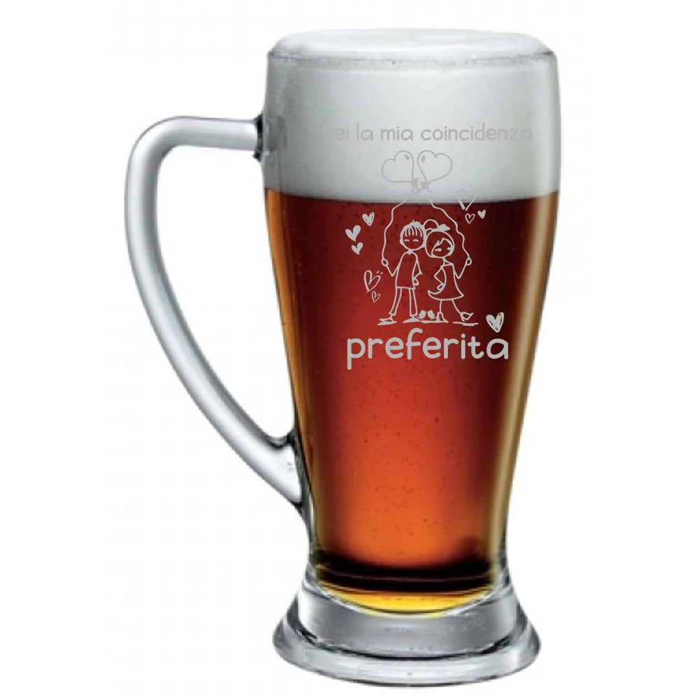 Boccale da Birra SanValentino Sei la mia coincidenza preferita Bicchiere 38 cl con incisione Regalo Fidanzati Innamorati Divertenti