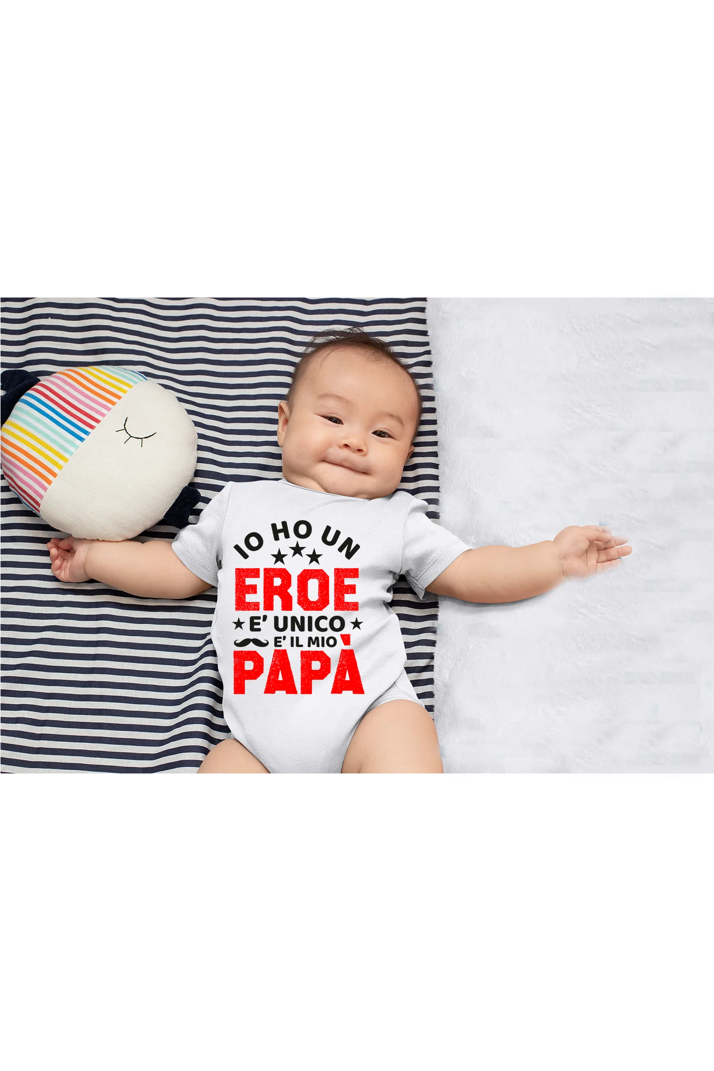 Body neonato maschietto femminuccia realizzato in stampa diretta su tessuto, 100% cotone, stampa morbida e traspirante.