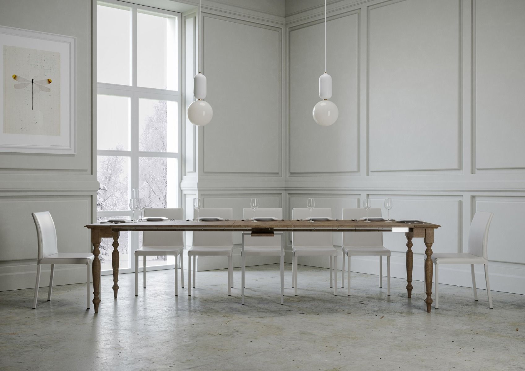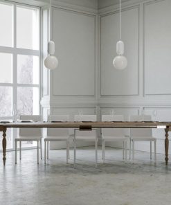 Bologna non è solo una consolle d’ingresso, ma è anche un lungo e pratico tavolo da pranzo, infatti, si allunga velocemente fino a 300 cm, grazie alle guide telescopiche interne, ottenendo un tavolo classico bello e funzionale.
