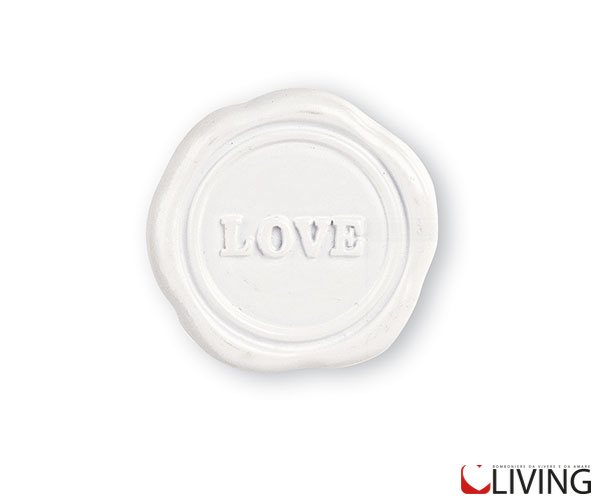 Ceralacca bianca con scritta love adatta da utilizzare come chiudi pacco o applicazione per sacchetto.