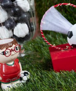 Ideale come bomboniera per comunioni, cresime o compleanni a tema sportivo, è anche un tenero porta piantina o portapenne per la cameretta.