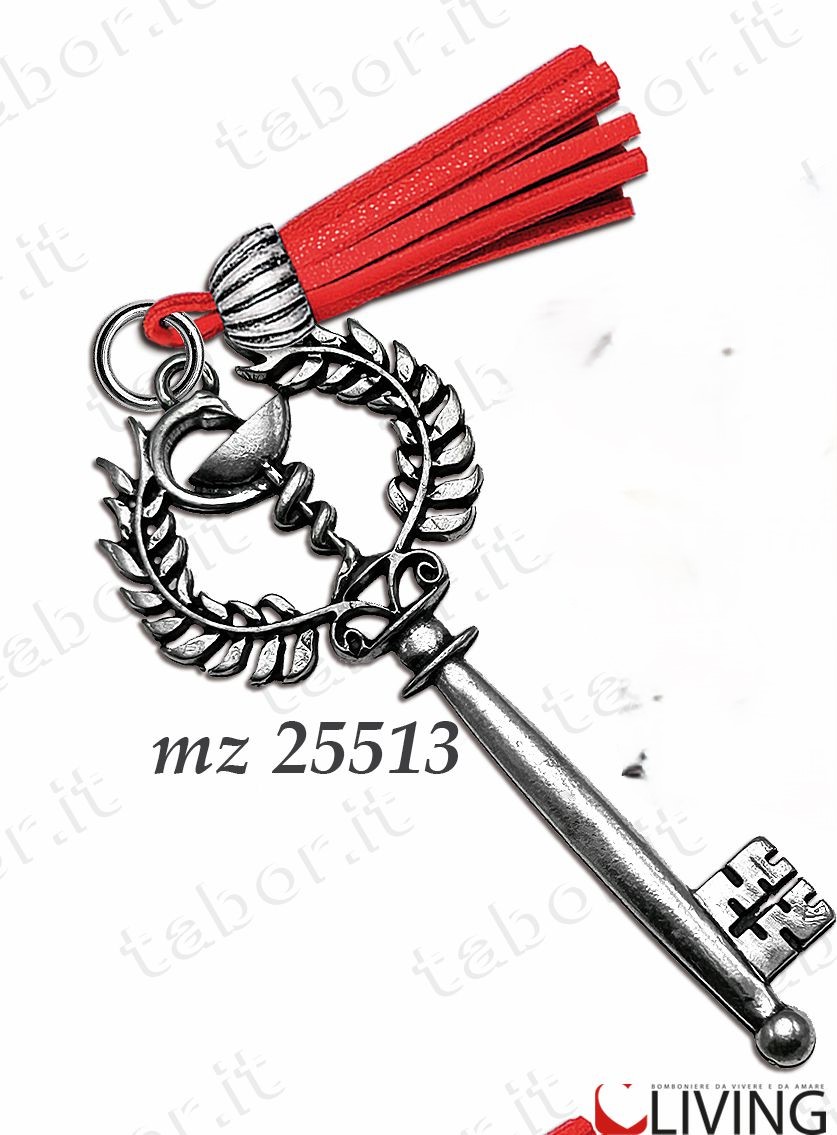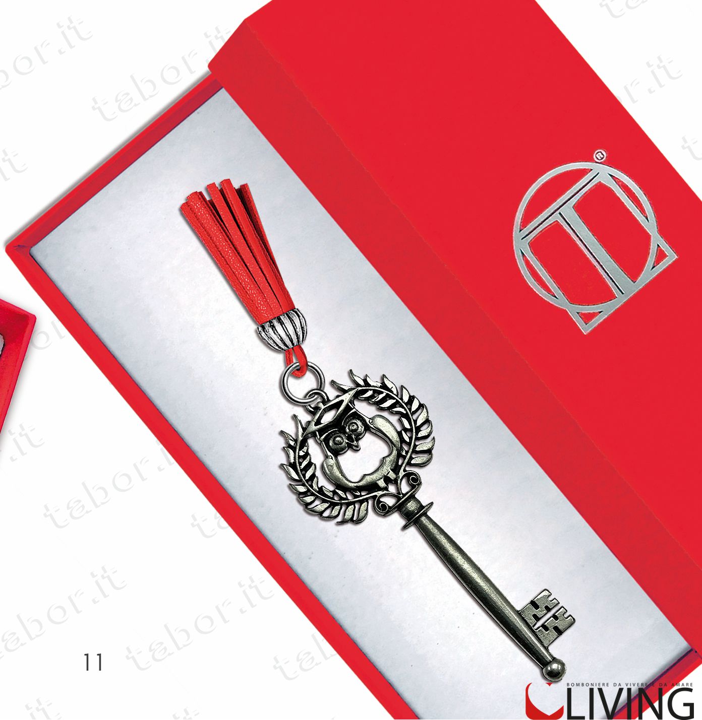 Chiave in metallo Completata da una nappina rossa decorativa, aggiunge un tocco di eleganza e originalità. Viene fornito in una confezione firmata Tabor, rendendolo pronto per essere regalato.