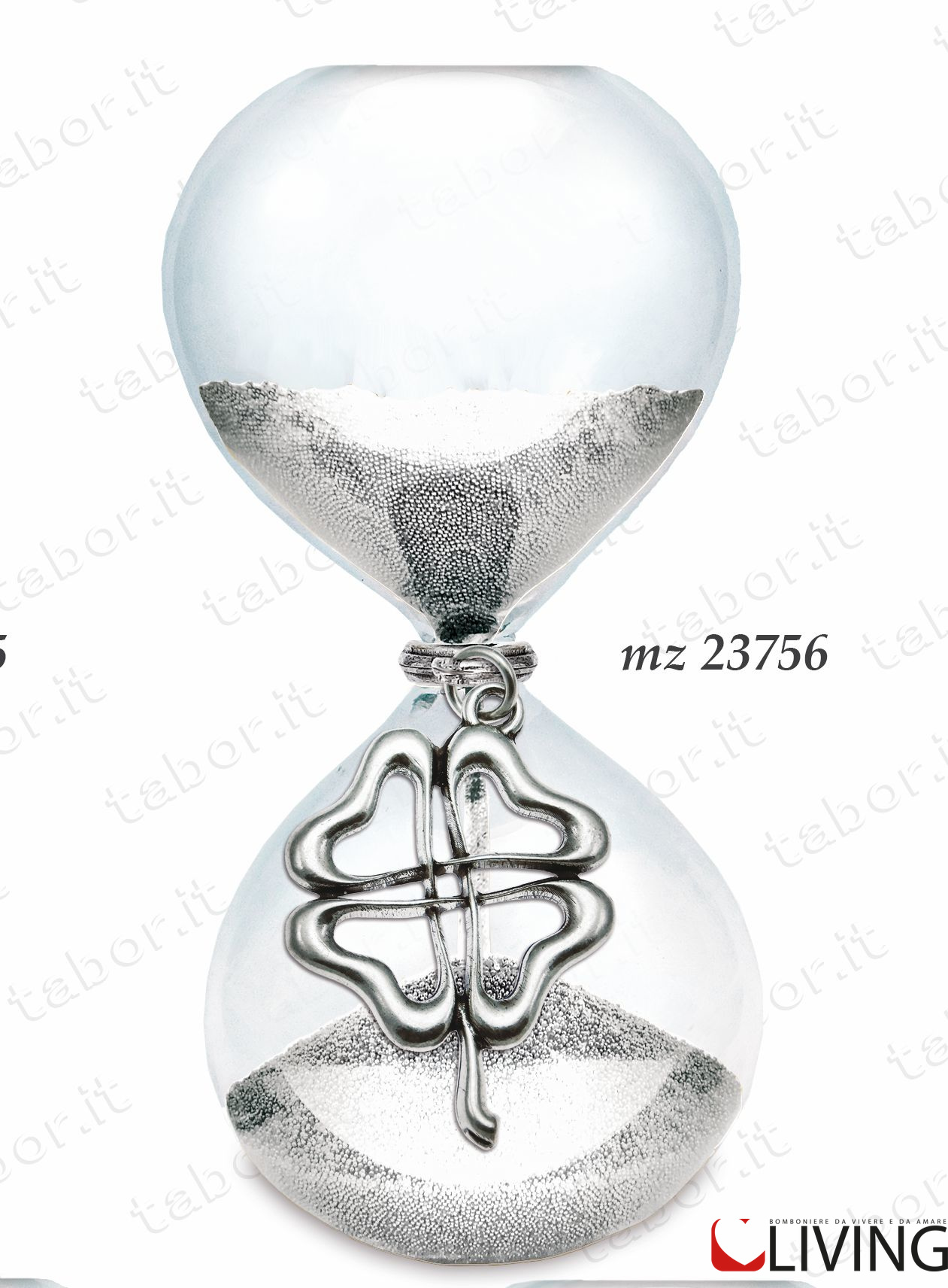 Il prezzo iniziale corrisponde alla clessidra compresa di ciondolo in metallo e scatola firmata Tabor , se vuoi puoi aggiungere il sacchetto portaconfetti che arriverà con 5 confetti a scelta, bigliettino personalizzabile con nome/tipo di evento/data e nastrino.