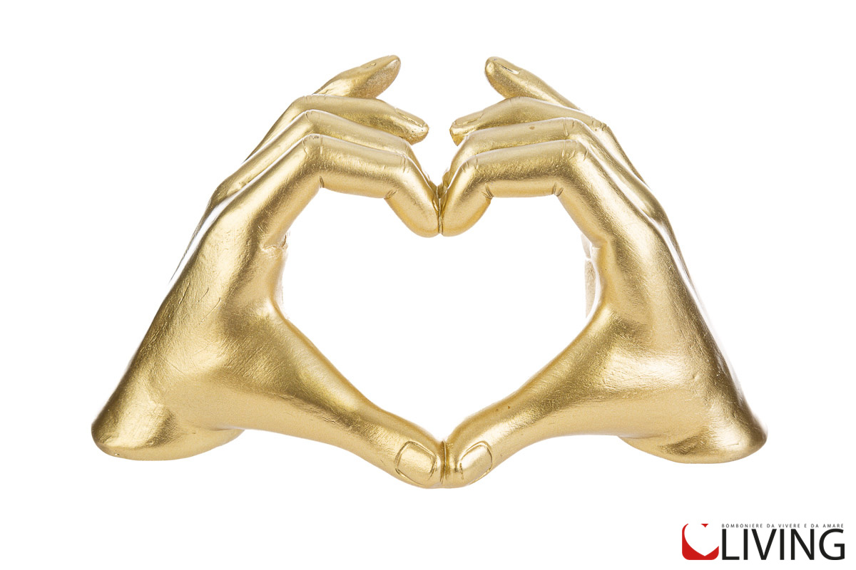 Le mani in resina che formano un cuore sono un’opera di arte unica e simbolica. Questa scultura rappresenta l’amore, l’affetto e la connessione tra due persone. Le mani, modellate con cura e dettaglio, sono create in resina dorata, conferendo all’opera un aspetto elegante e moderno.
