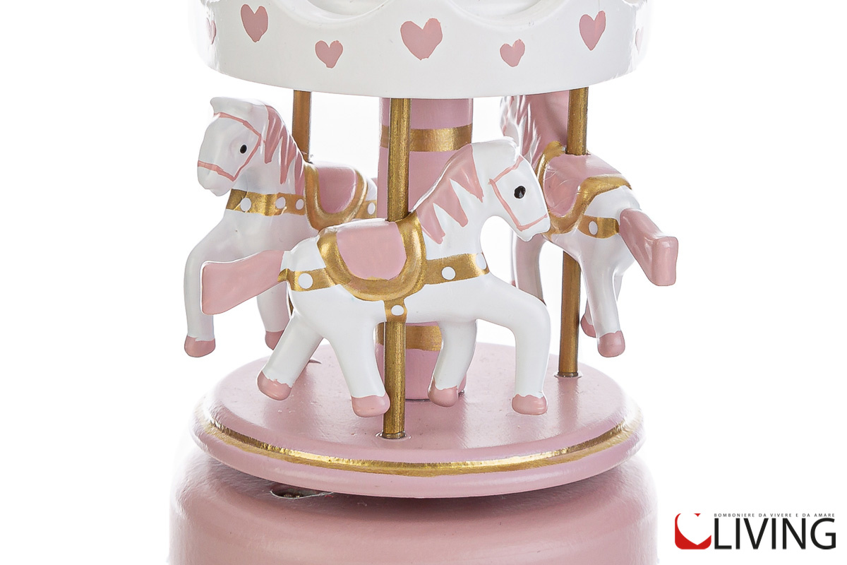I cavallini che girano e la melodia rilassante creano un’atmosfera magica e romantica, che renderà ogni momento speciale e indimenticabile. Scegli questa bomboniera e regala un pezzo di eleganza e dolcezza che sarà apprezzato da tutti i destinatari.