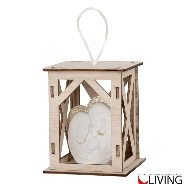 Design: Lanterna in legno con immagine in resina della Sacra Famiglia